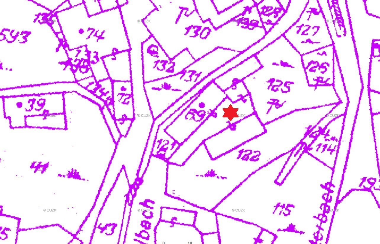 uprostřed obce, na levem břehu potoka