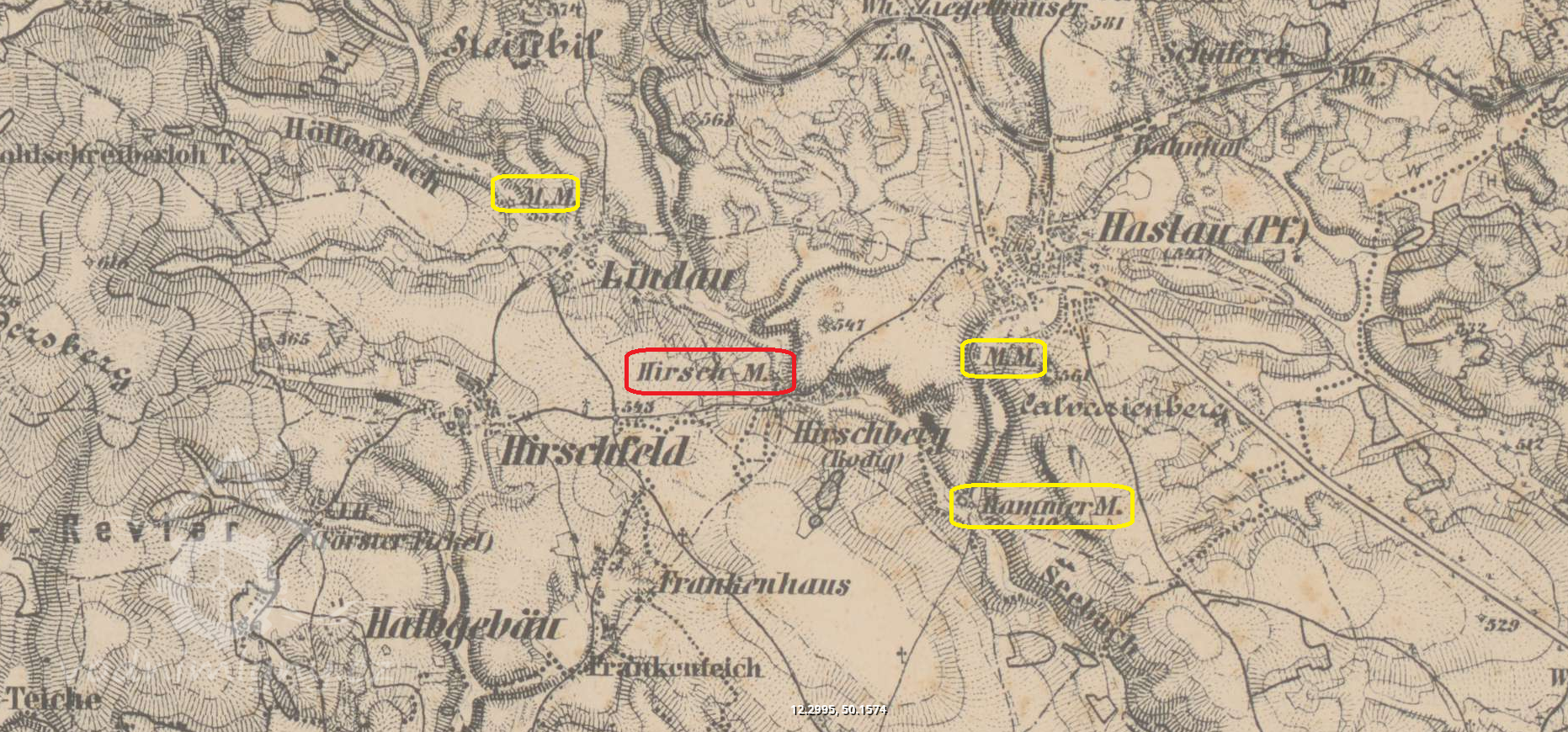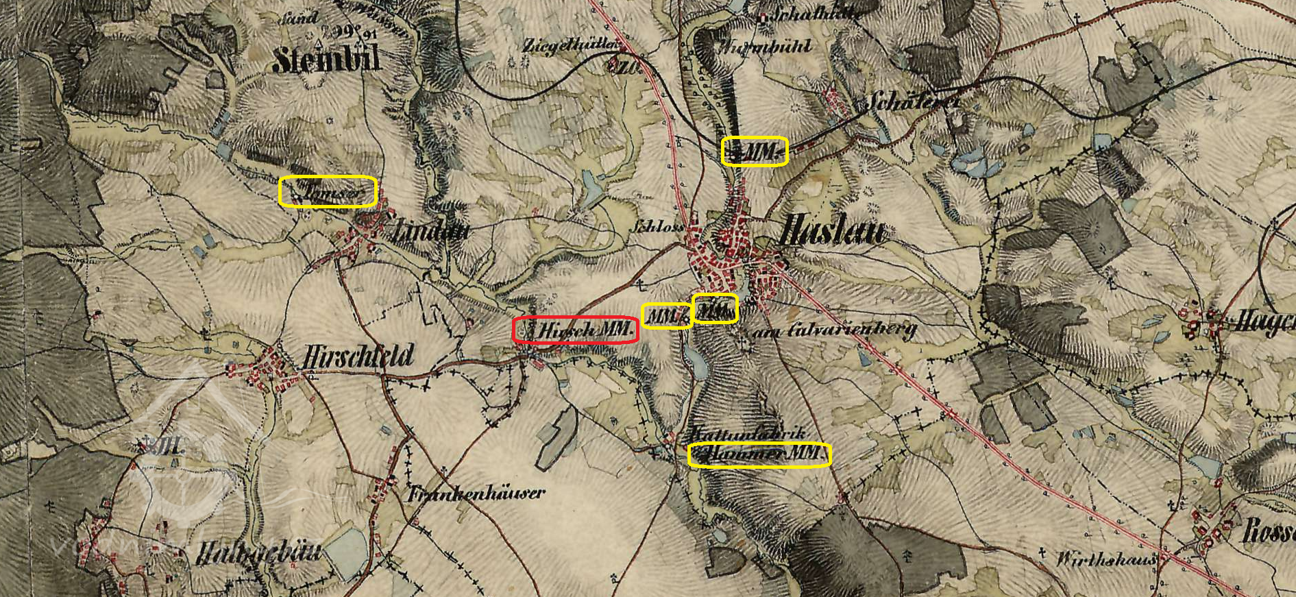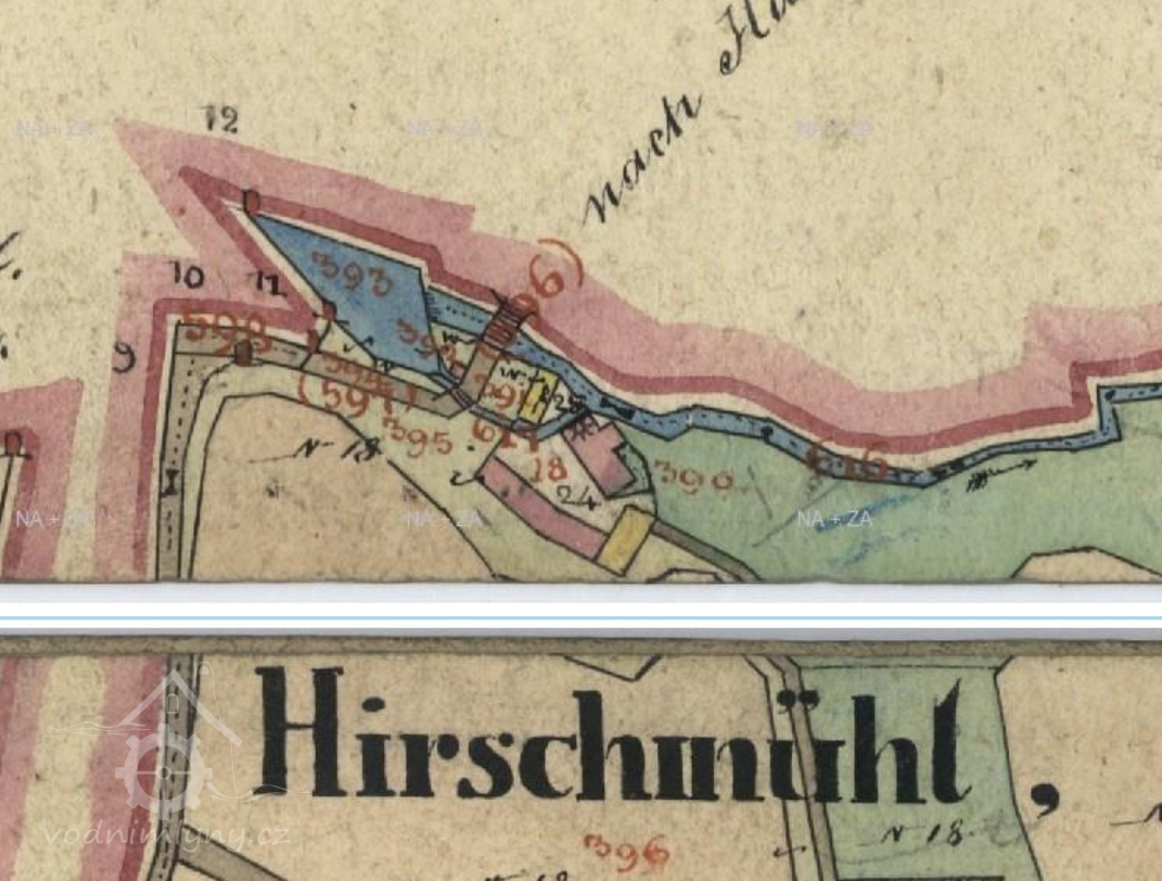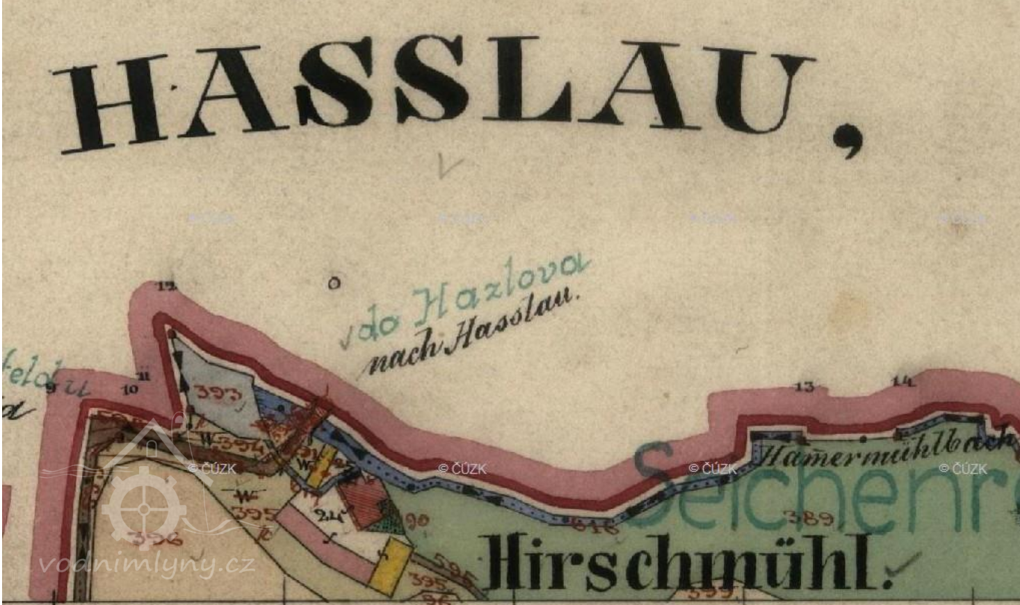 Mlýn na samotě, přestavěný na elektrárnu, zaniklý v 50. letech 20. stol.