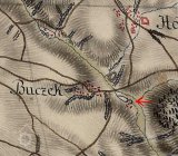 1895: jez přepadový ve špatném stavu z lomového kamene mezi vyhnilou dřevěnou konstrukcí, zarostlý travou, 8,5 m dlouhý, 1,7 m široký.
