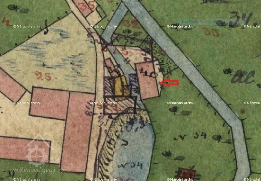 Původní zadní část mlýnské budovy sloužící jako mlýnice se nedochovala. Přední část byla upravena na rodinný domek určený k bydlení, který má shodné čp. 34.