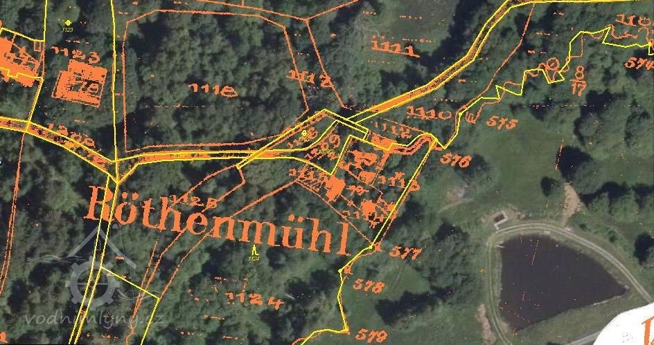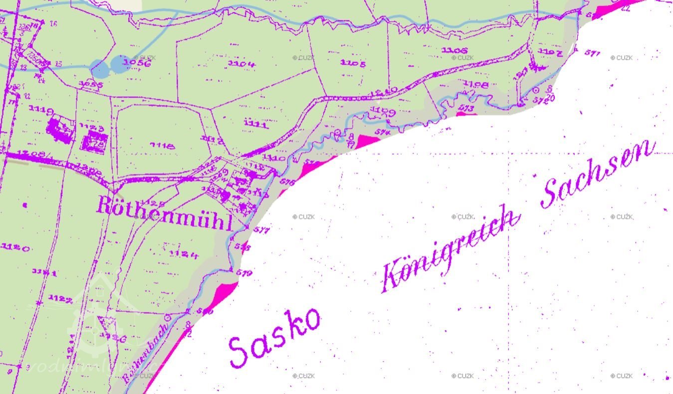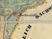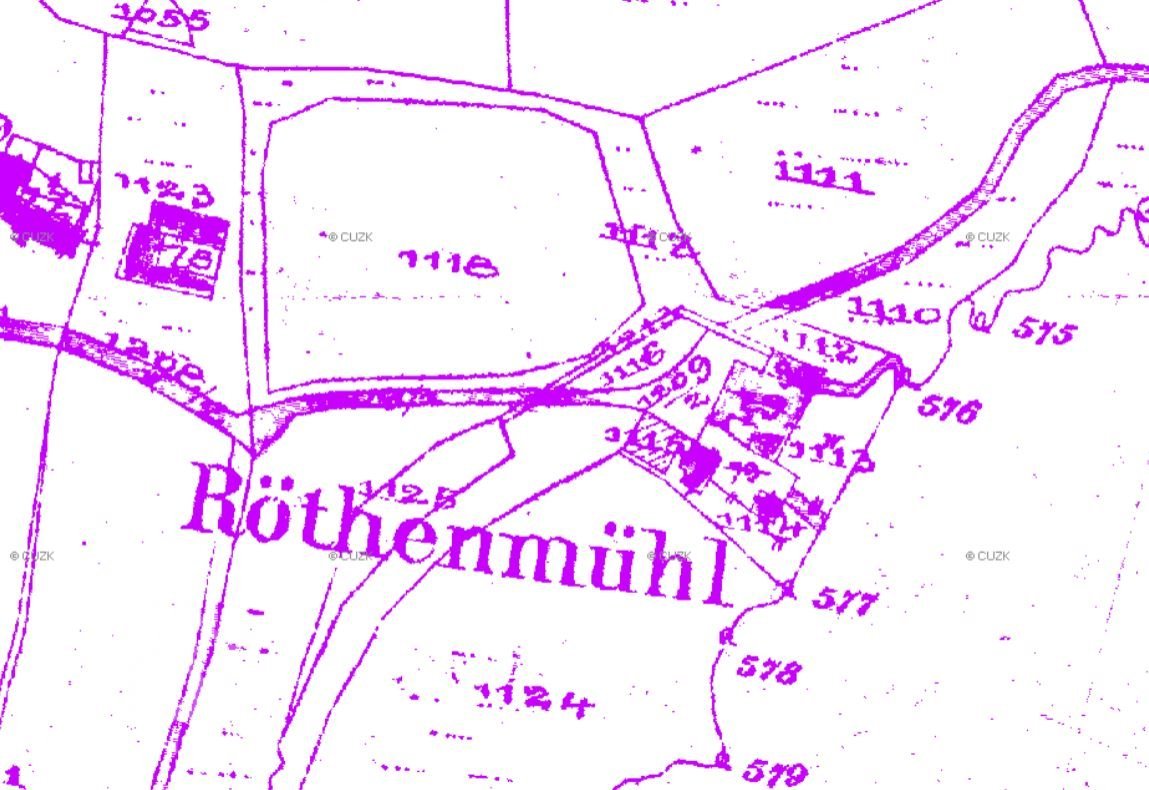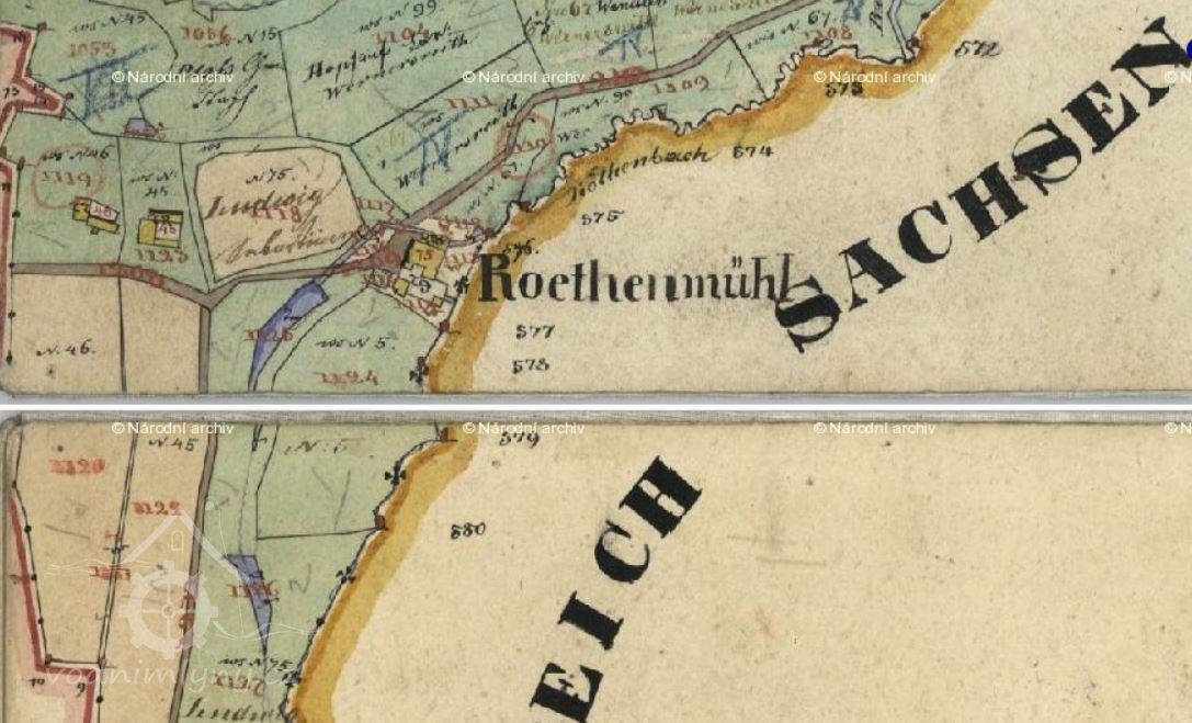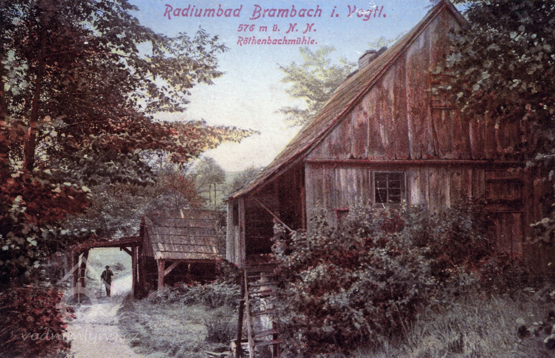 Na německé straně, naproti bývalého mlýna,  stoji několik usedlostí.Toto malé sídlište se jmenuje Röthenbach a patří od r. 1880 pod správu města Bad Brambach/Sasko.