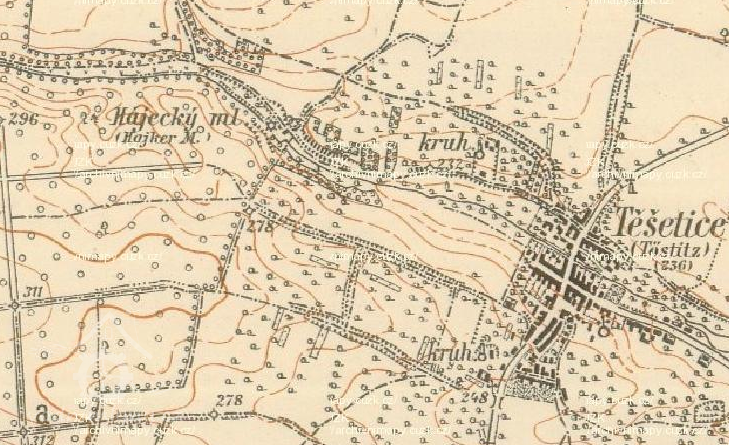 Samota - samotný mlýn se nacházel v blízkosti obce Těšetice, odkud bylo uváděno i čp. a matrika, uváděno jako Těšetický mlýn