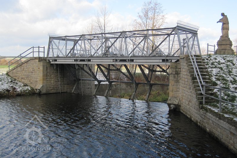 Na korunu jezu byla ze starého mostu přes Mži přenesena socha sv. Jana Nerpomuckého od významného barokního sochaře lazara Widmanna (1697-1769).