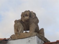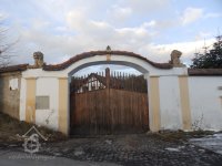 Jedna budova typu větší chalupy, do areálu vede brána s kamennými plastikami lvů.