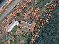 Rámová pila ve zvláštní prkenné budově až pro 8 plechů spolu s okružní pilou. Pila pohání se pomocí transmise.