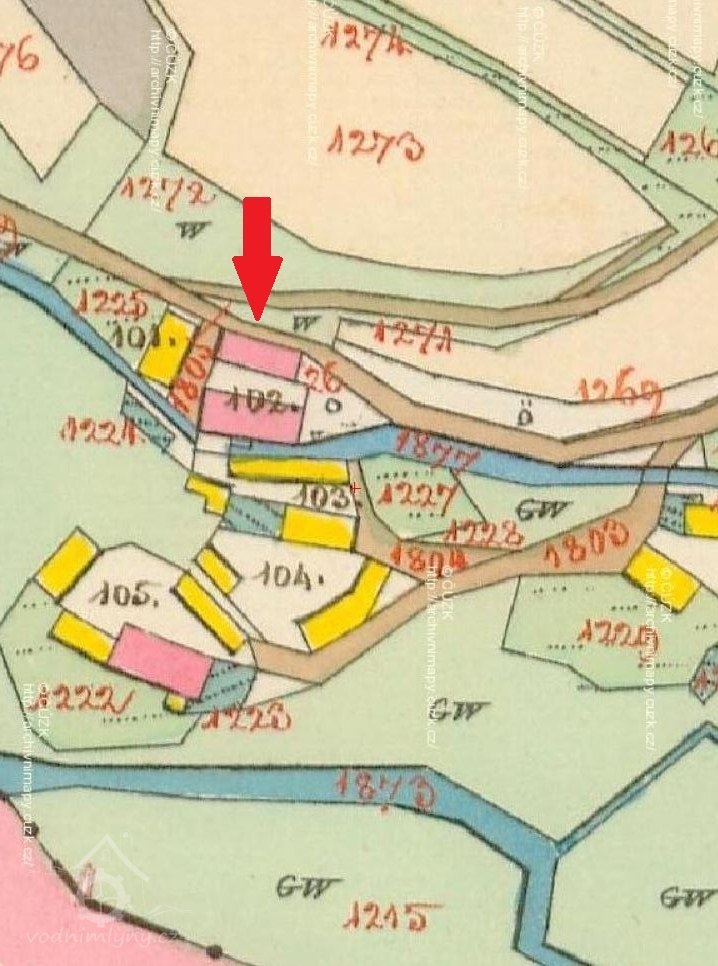 Popis1930: 1 kolo na svrchní vodu, hltnost 0,077 m3/s, spád 3 m, výkon 2 HP