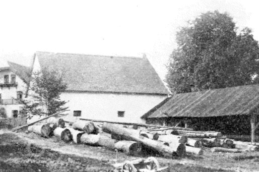 Naproti mlýnu přes lednici dřevěná pila na zděné podezdívce se šindelovou krytinou. Další hospodářské budovy.