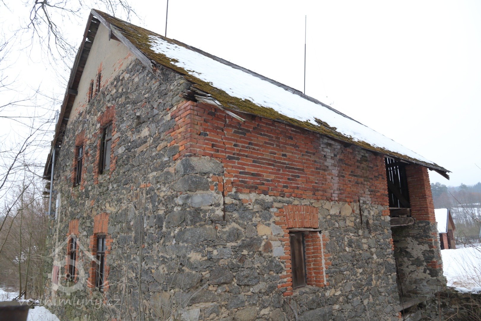 Starší roubená část krytá došky 2009-2010 přemístěna do skanzenu vve Vysokém Chlumci, na místě zústala mladší část - třípodlažní mlýnice z roky 1926.