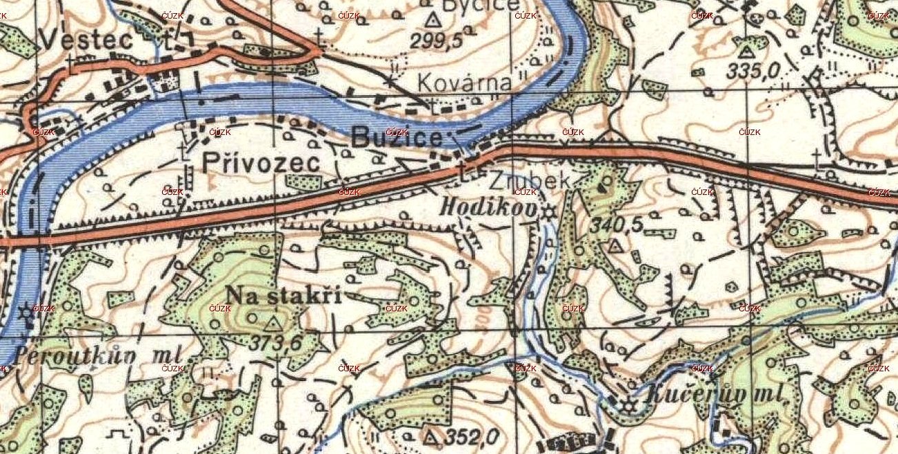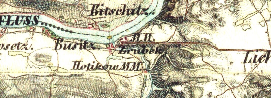 Zaniklý mlýn, naproti rožmberskému hrádku, který nebyl na mapách zakreslován. Dnes je zatopen Vltavou.