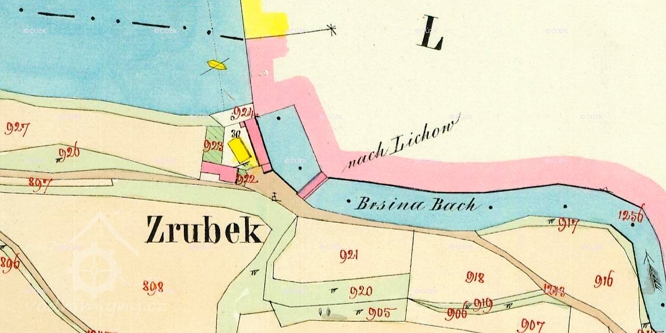 Popis1930: 1 kolo na střední vodu, hltnost 0,145 m3/s, spád 2,6 m, výkon 3,4 HP
