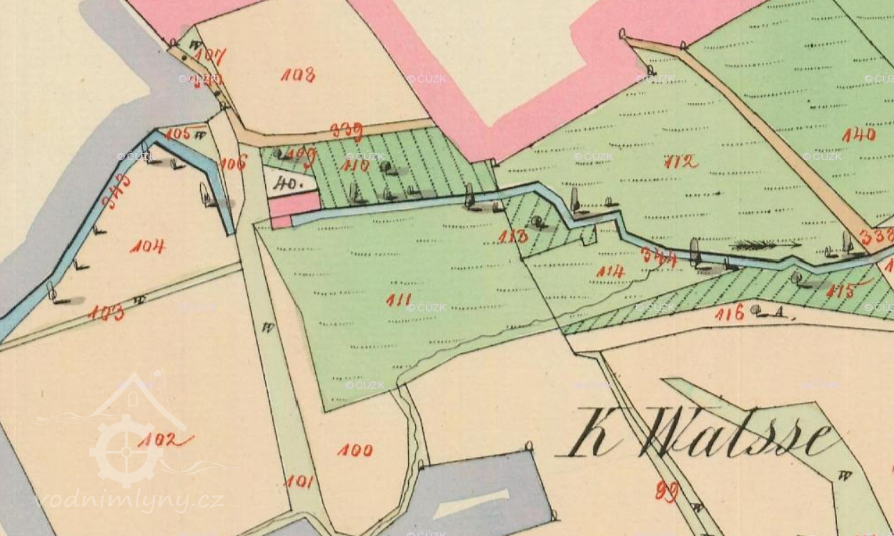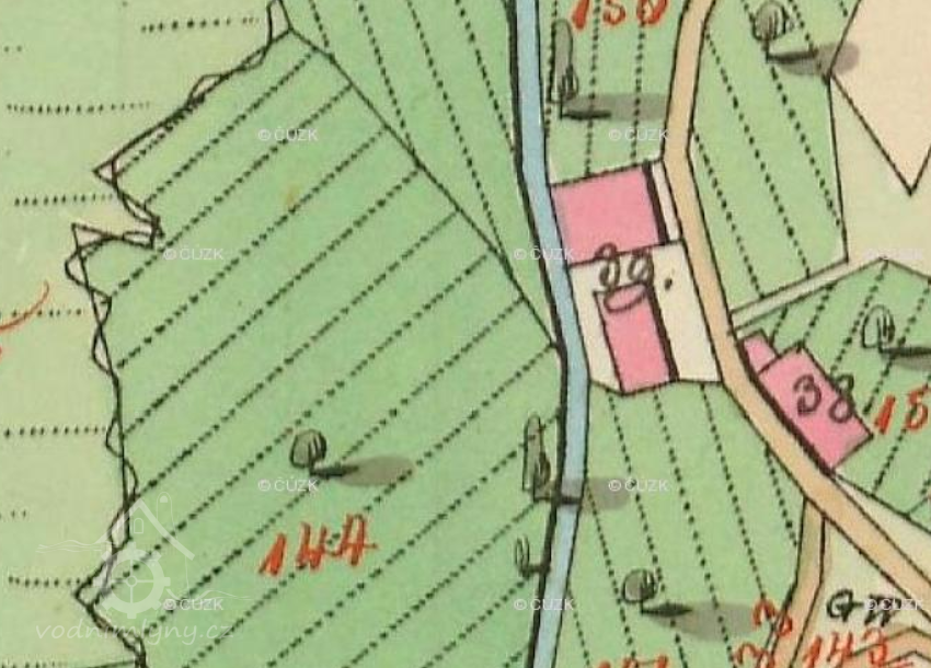 O něco výše proti proudu ležela valcha slánského soukenického cechu.