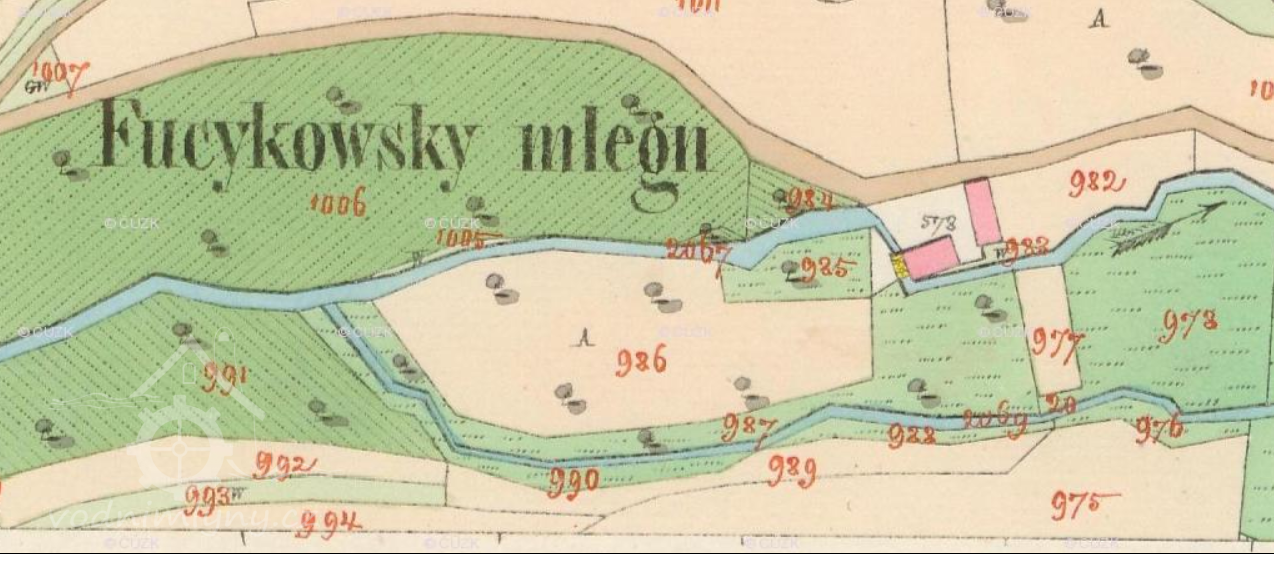 Popis1930: 1 kolo na svrchní vodu, hltnost 0,14 m3/s, spád 4 m, výkon 4,85 HP