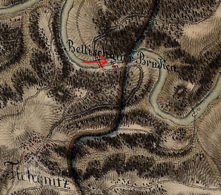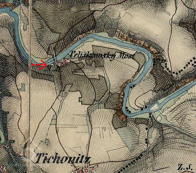 krytý most u mlýna strhla 1845 povodeň, již nebyl obnoven