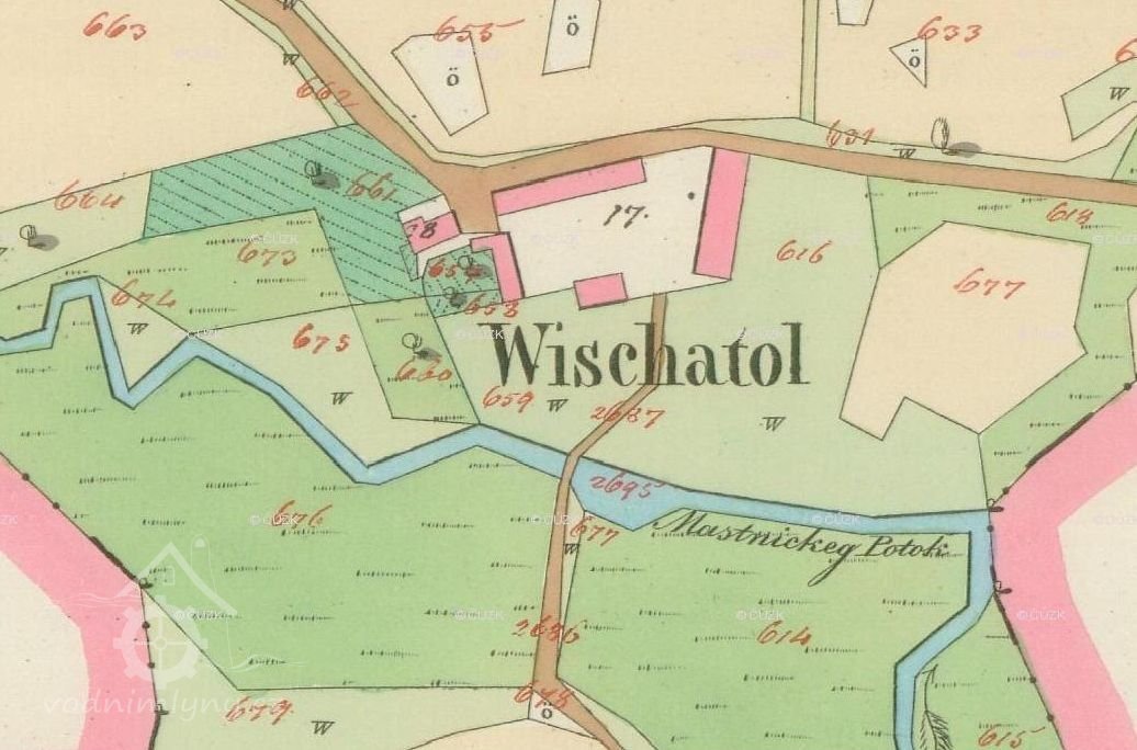 Na potoce Mastníku je při dvoru Vyšatoly třípatrová budova velkomlýna, který byl postaven r.1856, ale pro nedostatek vody již r.1858 zastaven. Budova pak sloužila jako sýpka.