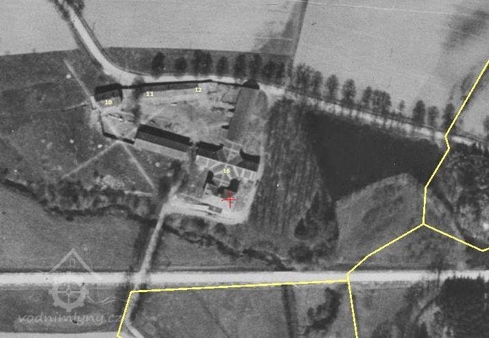 Akumulační nádrž napájená náhonem z Mastníka vedoucím skrze Spálený rybník. K budově voda přicházela z východní strany, pod budovou pokračovala zpět do potoka.
