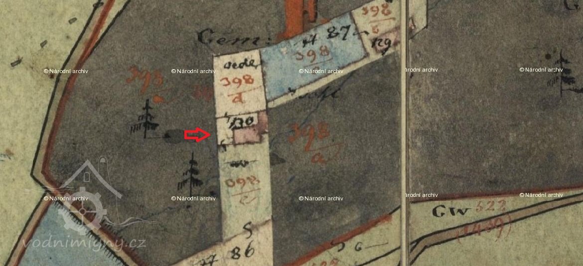 Nad mlýnem byl malý rybník, ze kterého tekla voda náhonem na vodní kolo.