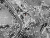 Na leteckém snímku z r. 1953 je ještě vidět celý komplex budov továrny, která však postupně chátrala.