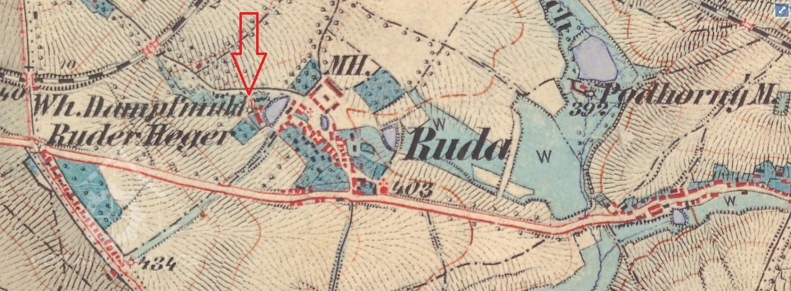 Po roce 1840 vystavěl mlynář Rouček nad bývalou šachetní jámou. Na základy použity velké kamenné kvádry, zvané žehrováci (z lomů u Kamenných Žehrovic).