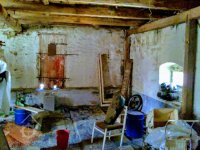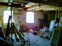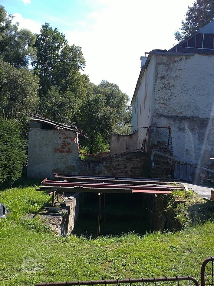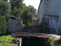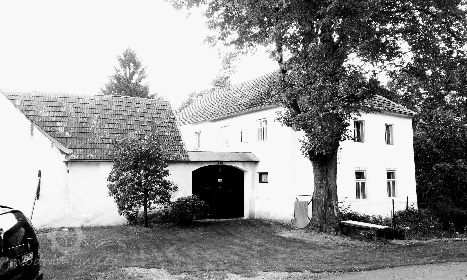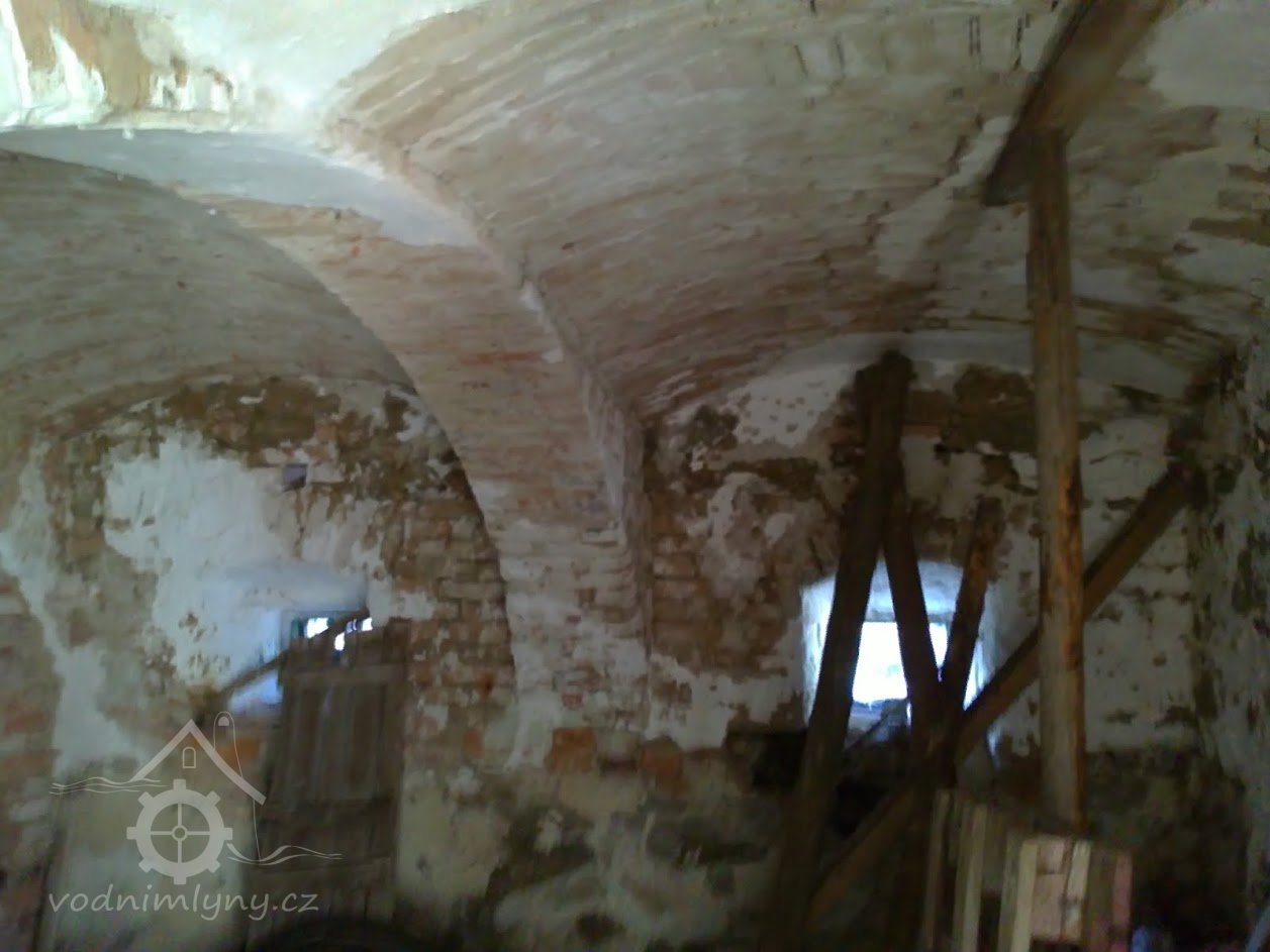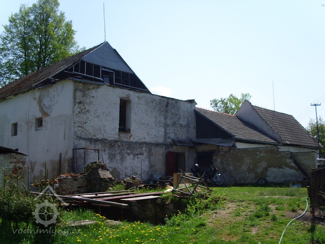 Mlýnice po 2. sv. válce částečně o cca 8m ubouraná. Před rekonstrukcí / přestavbou mlýna v 19. stol. šlo o přízemní kamennou budovu (obvodové zdi jsou asi metr silné spojované jílem či hlinitou maltou) pravděpodobně bez patra (ledaže by bylo dřevěné, protože to současné je novodobé čistě cihlové), končící před lednicí, jejíž zbytky jsou doposud patrné. Přední strana /průčelí domu půdorysně odpovídala stávajícímu stavu, ale budova zkrátka byla kratší (viz. nákres na snímku/fotografii). Dovnitř současné později přistavěné mlýnice, tam kde je na fotografii vyznačeno, že objekt kdysi končil, směřují z té staré původní budovy zazděná okna (jedno takové okno se nachází schováno pod dřevěným schodištěm vedoucím z předsíně v obytné části domu na půdu, druhé se nachází na stěně v mlýnici za stávající technickou místností / toaletou). Rovněž podlaha této části domu je položena o cca 30-35 cm výše než zbytek stavby. Mlýn byl postupně jak se rozšiřovala činnost a ekonomicky se vzmáhal průběžně dostavován.