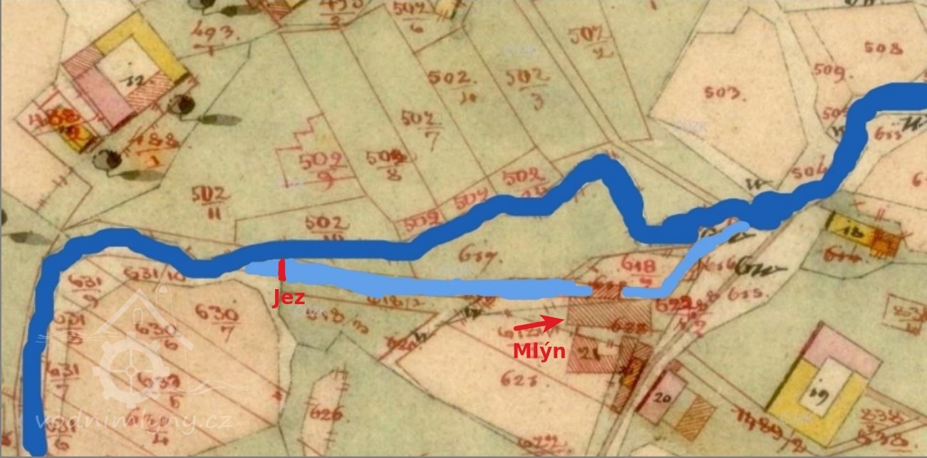 Popis1930: 1 kolo na spodní vodu, hltnost 0,1 m3/s, spád 1 m, výkon 4 HP