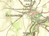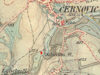 ...Melivo vozí se do šesti mlýnů ležících na dvou potocích. Z těch větší přitéká ode Lhotky a naplňuje nejprve rybník u mlýna na Vackově. Vackov je skupení jedenácti chalup kolem mlýna čtvrt hodiny cesty k východu od Černovic. Mlýn ten patříval před časy k Svatavě, ale r. 1596 k žádosti mlynáře Václava připojen jest od Petra Voka z Rozemberka k Černovicům. Blíže městu pod Vackovem protéká potok rybník u mlýna „Ťápalova“, kdež i pila se nalézá. Na SV. pod Moudrovem vzniká potok druhý, naplňuje rybníky „Hořejší“ a „Dolejší“ při mlýnech týchž jmen, ležících u samého městečka, odtud teče Předměstím a Pršínem, kdež je most kamenný se sochami sv. Jana Nepomuckého a sv. V8clava a při západní straně města běží do obory, kdež se spojuje s potokem prve dotčeným. Část vody shražená žene pod oborou mlýn „Šelichův“ a ještě dpleji naplňuje rybník hluboký s koupadlem u mlýna Louckých. V létech suchých potoky tak málo vody rybníkům dodávají, že jen po přestávkách, vždy až se rybník naplní, mlýti se může... (pep)