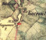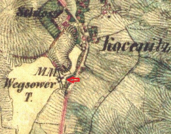 Podle historické mapy je značen u horejšího rybníka (Výsováku), ale fyzicky je pod hrází Mlýnského rybníka.