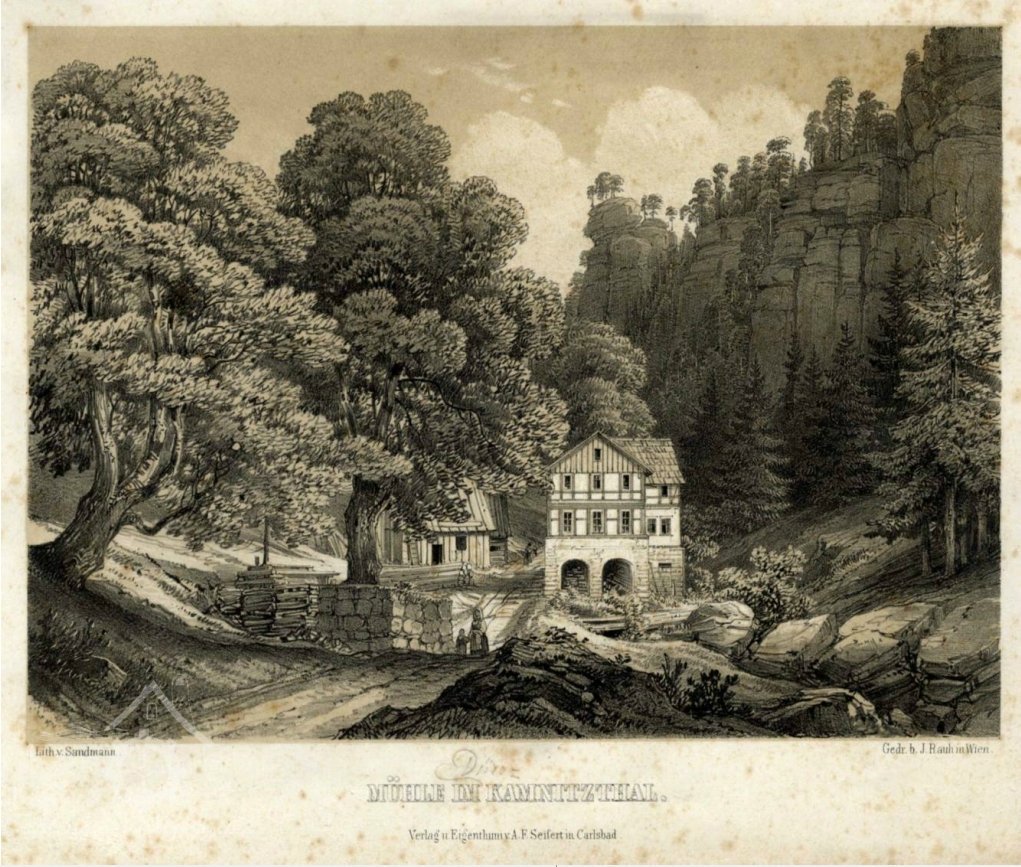 Romantický mlýn zachytila řadu malířů - např. A.E.Leonhardi z Loschwitz u Drážďkan nebo bedřich Havránek (1821-1899)