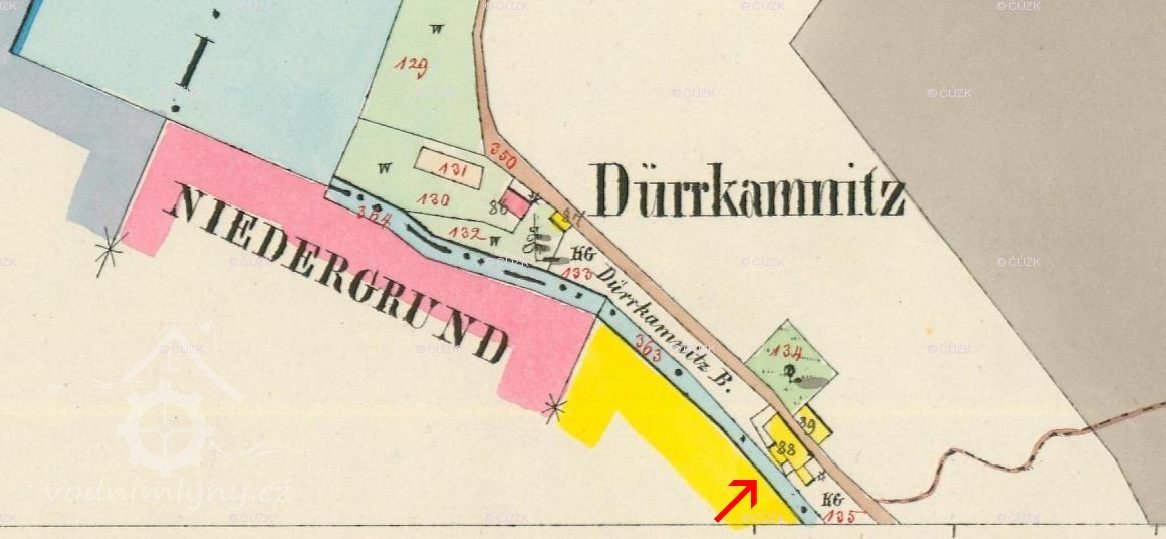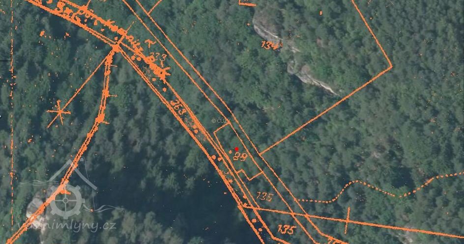 Nad mlýništěm je dochovaný kamenný jez přehrazující Suchou Kamenici, trasa náhonu je ovšem již zcela nezřetelná.