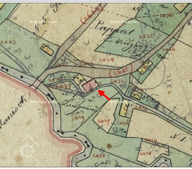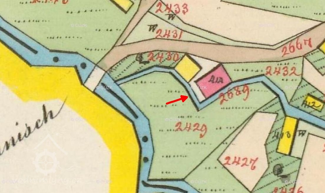 Na císařském otisku a indikační skice je zakreslen náhon.