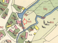 Mlýnice a dům těsně vedle sebe, avšak o rozdílné výšce