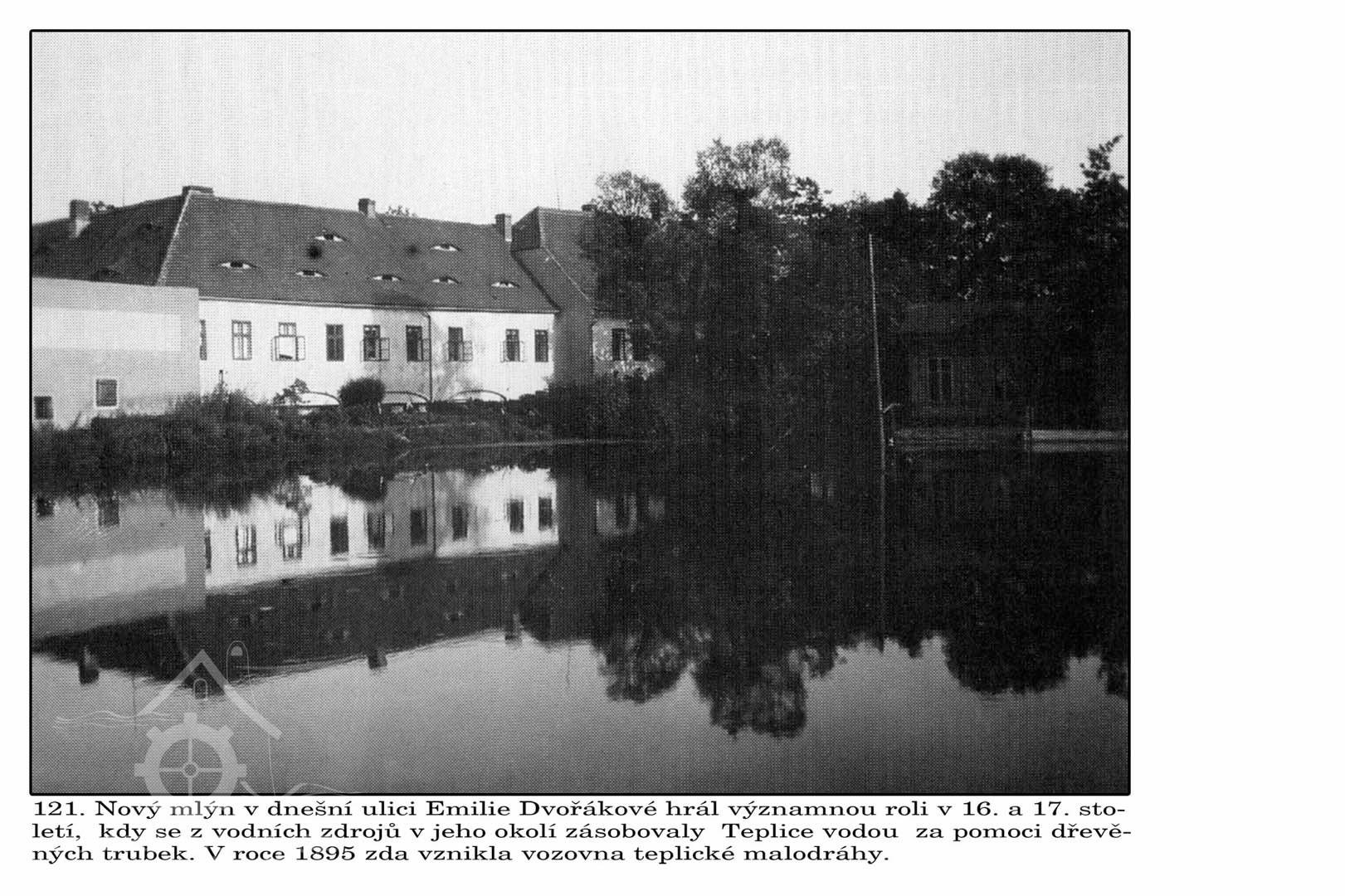 První zpráva o existenci mlýna je z 15. ledna 1622, kdy je v matrice narození zaznamenán Caspar Witschel, mlynář na Novém mlýně, jako kmotr při křtu v Novosedlicích. V roce 1661 je v Teplické křestní knize uveden krejčí Martin Schütz, bydlící v Novém mlýně, a roku 1665 je tamtéž jmenován mlynář Tobias Ritter z Nového mlýna. 11. srpna 1709 nechávají Christian  a Dorothea Schmidtovi z Nového mlýna u Trnovan pokřtít chlapce Johanna Josefa. V novosedlické kostelní knize se dále dočítáme, že novomlýnský mlynář Christian Schmidt platil roku 1727 za zhotovení poklopu ke křtitelnici 2 floreny 30 krejcarů. Je uvedena též zmínka, že Nový mlýn má dvě složení a stojí na nestálé vodě. Je zaznamenán v Dominikánském katastru v roce 1713 a 1718 s dalšími 21 panskými mlýny. Mimoto je též uveden na teplické panské mapě z roku 1714 /zhotovena Adamem Friedrichem Zürnerem/.