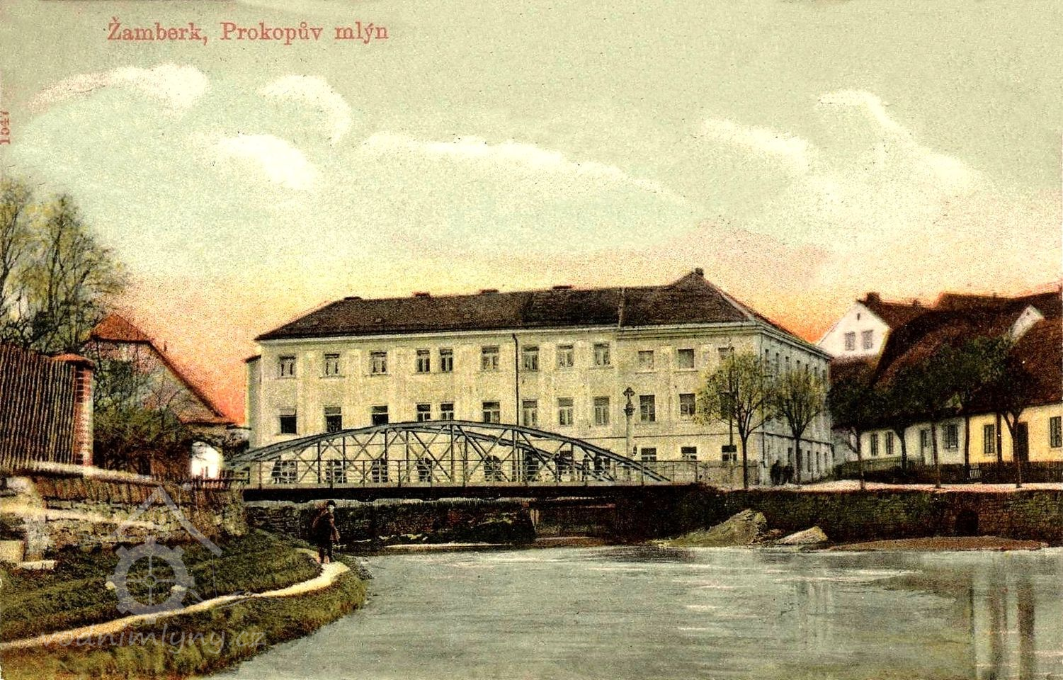 Mlýn v centru Žamberku byl uváděn už v polovině 17. století. U přechodu řeky vznikly na mlýnském náhonu vrchnostenský hamr a olejna, před r. 1657 přeměněné v Dolní mlýn. R.1721 se uvádí jako od kamene vystavený s dvojím složením a třemi stoupami. V roce 1862 koupil mlynář Vašíček pozemky po vyhořelé koželužně a jirchárně a připojil je ke svému pozemku. Vodní kniha uvádí mlýn se dvěma koly. Roku 1879 byl exekučně mlýn prodán mlynáři Dvořákovi z Vysokého Mýta. Od r. 1901 jej vlastnil Otakar Prokop (firma Jos. Prokopa synové, Pardubice), který jej po požáru přestavěl. Ten mlýn vlastní ještě k r. 1916. Poté (min. od r. 1919) jej vlastnili manželé Valáškovi. Ve 40. letech 20. stol. přicházeli k námezdnímu mletí mleči z půlky Žamberka, z půlky Lukavice a z Dlouhoňovic. Mlýn byl znárodněn v r. 1948. Současná budova mlýna pochází patrně z poloviny 19. století, mlýn elektřinou osvětloval centrum Žamberku. Mlýn zužitkovával vodní sílu Divoké Orlice náhonem při spádu 3,07 m pomocí turbíny o výkonu 80 ks, záložním zdrojem pro pohon mlýn a výrobu elektřiny byl motor na nasávaný plyn o výkonu 70 ks spalující ostravský hráškový koks v množství 100 t ročně. Elektřinu vyrábělo stejnosměrné dynamo z roku 1893 dvojvodičové soustavy o výkonu 50 kW.