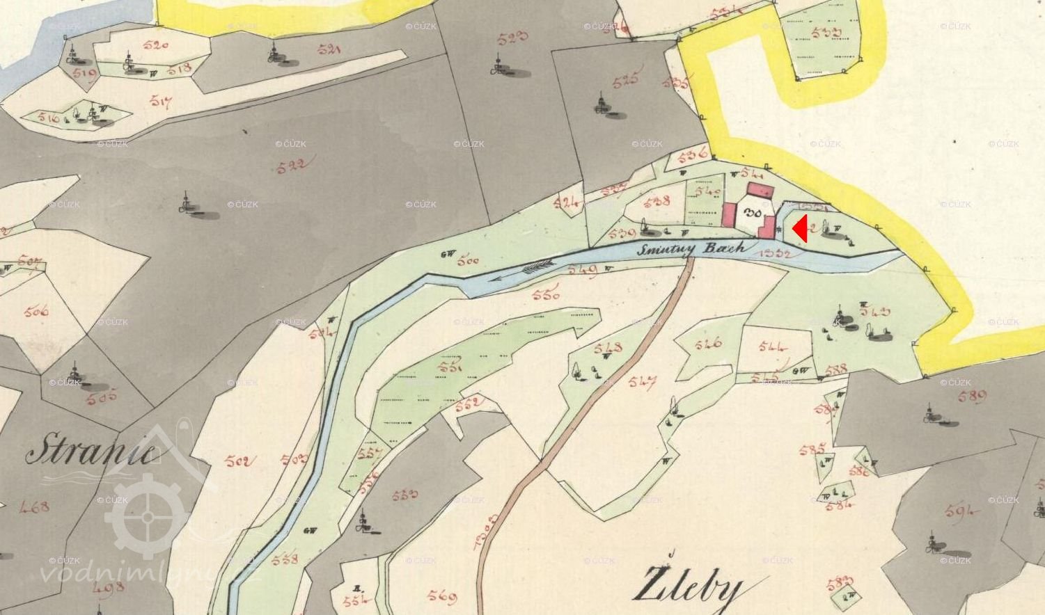 Tehdy měl mlýn vodní kolo o průměru 5 metrů na svrchní vodu. Kolo mělo 36 lopatek s plným průtokem 300 litrů vody za vteřinu a spád vody z náhonu činil 420 – 180 cm. Kolo mělo výkon 14 HP. V té době měl mlýn dvě složení. Pila byla jednuška na Hromadově.