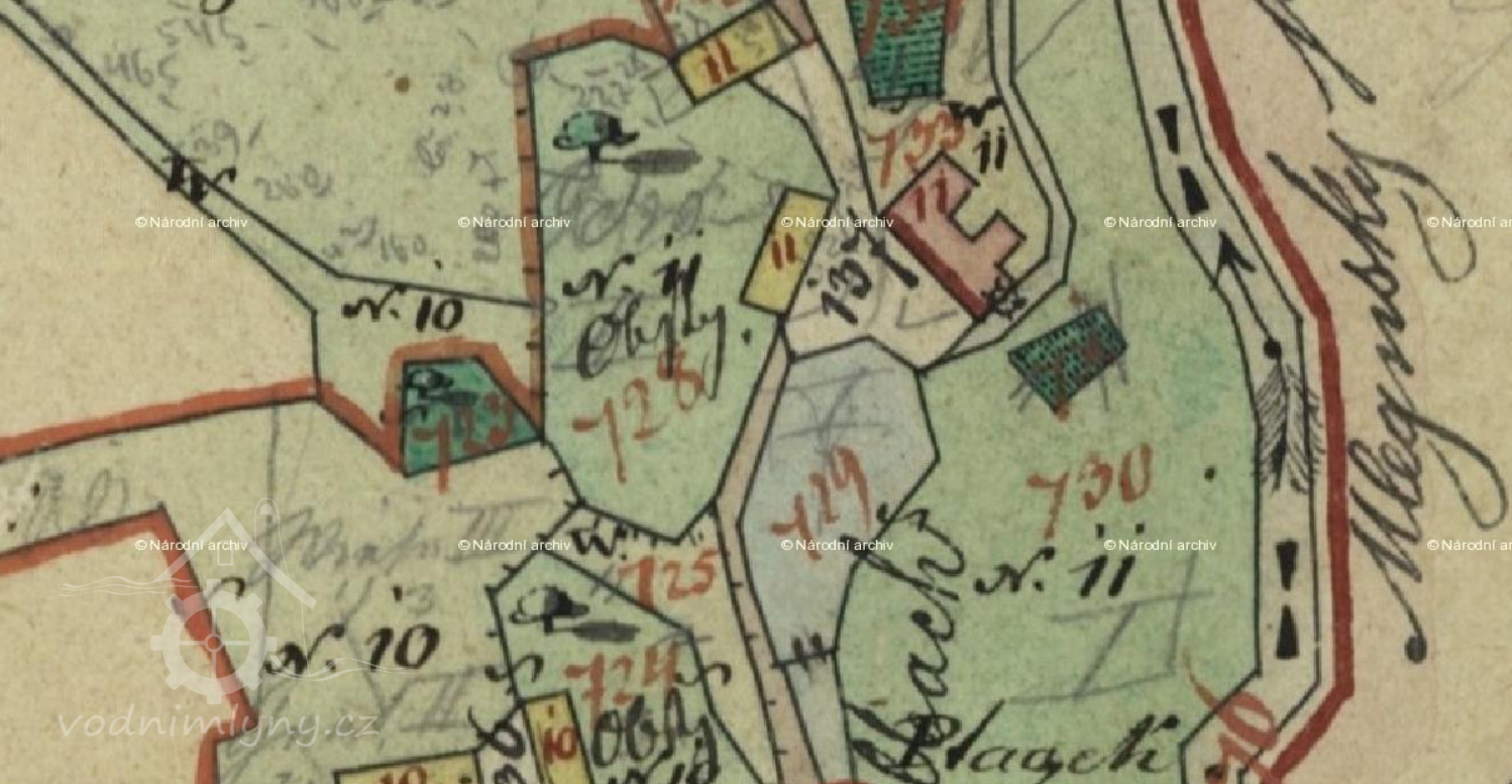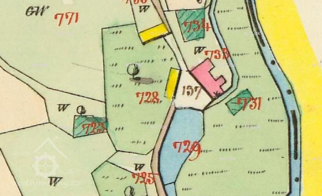 Popis1930: 1 kolo na svrchní vodu, hltnost 0,097 m3/s, spád 4,1 m, výkon 3,446 HP