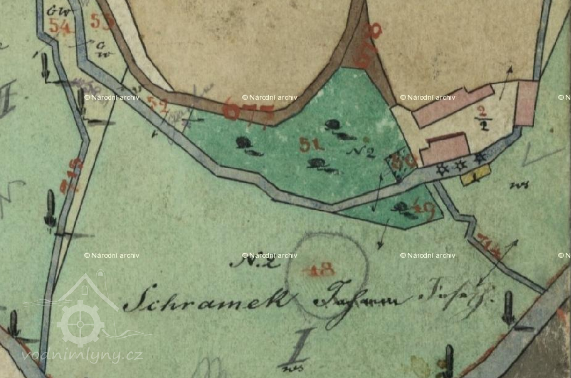 1840 majitel Jan (Josef) Šrámek, syn Františka Šrámka, mlynáře pod Svatým Polem čp. 20, manž. Marie roz. Ambrožová ze Senešnice čp. 18