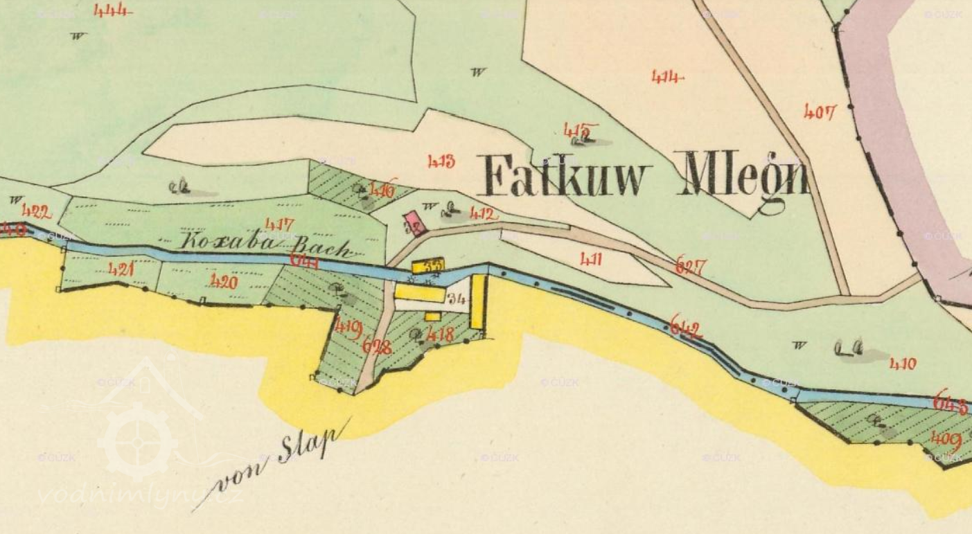 Mlýn na samotě v údolí Kocáby, náležející k Bratřínovu, býval střídavě nazýván Fafkův nebo Fatkův. Dodnes zůstalo pouze hospodářské příslušenství, a to ještě zdevastované.