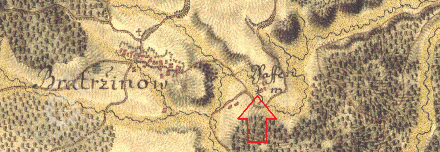 1,5 km východně od kapličky v Bratřínově