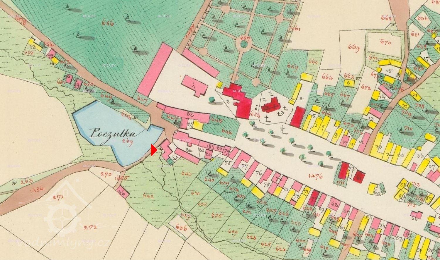 Informace o mlýně nám dávají pouze mapy z první třetiny 19. století a pak dokumenty z doby o sto let později. Matrikami je mlýn doložen koncem 18. století. Jak mlýn vypadal v polovině minulího století ukazuje  letecká mapa z 50 let.