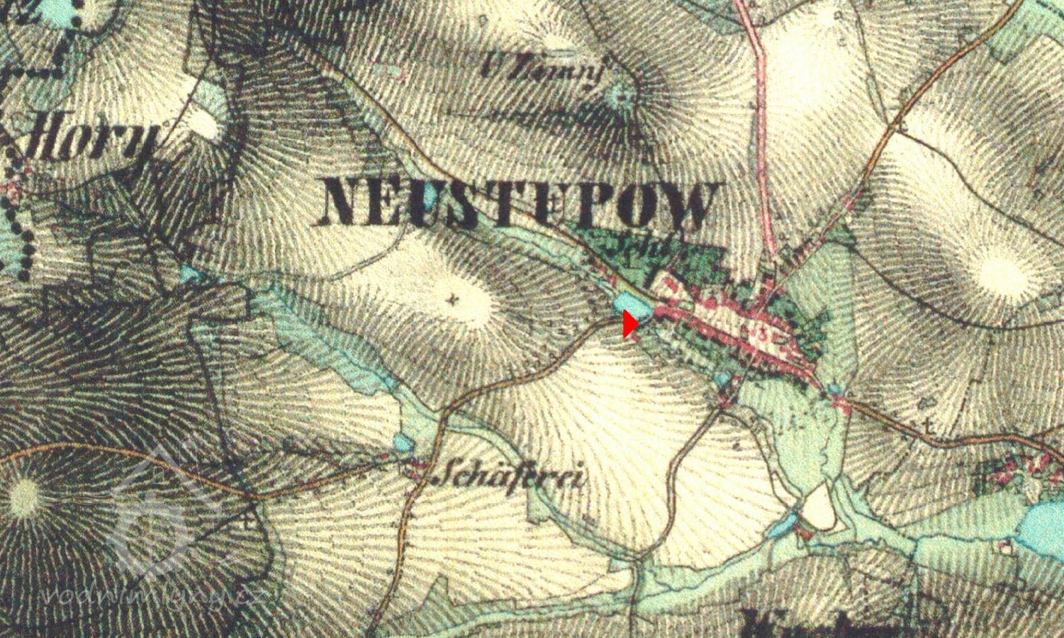 Přijíždíme-li do Neustupova od Votic je na začátku obce vlevo místní zámek a vpravo malý rybník. Rybník se stále jmenuje Pačulka, ale mlýn stejného jména by jste marně hledali. Stával někde vlevo od kontejnerů na tříděný odpad a není po něm ani památky.