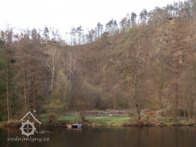 200 m východně od kostela sv. Kiliána u Davle (ale přes řeku)