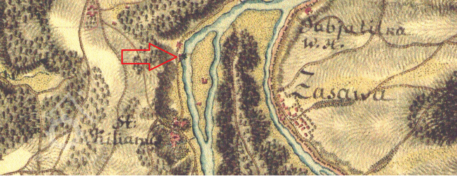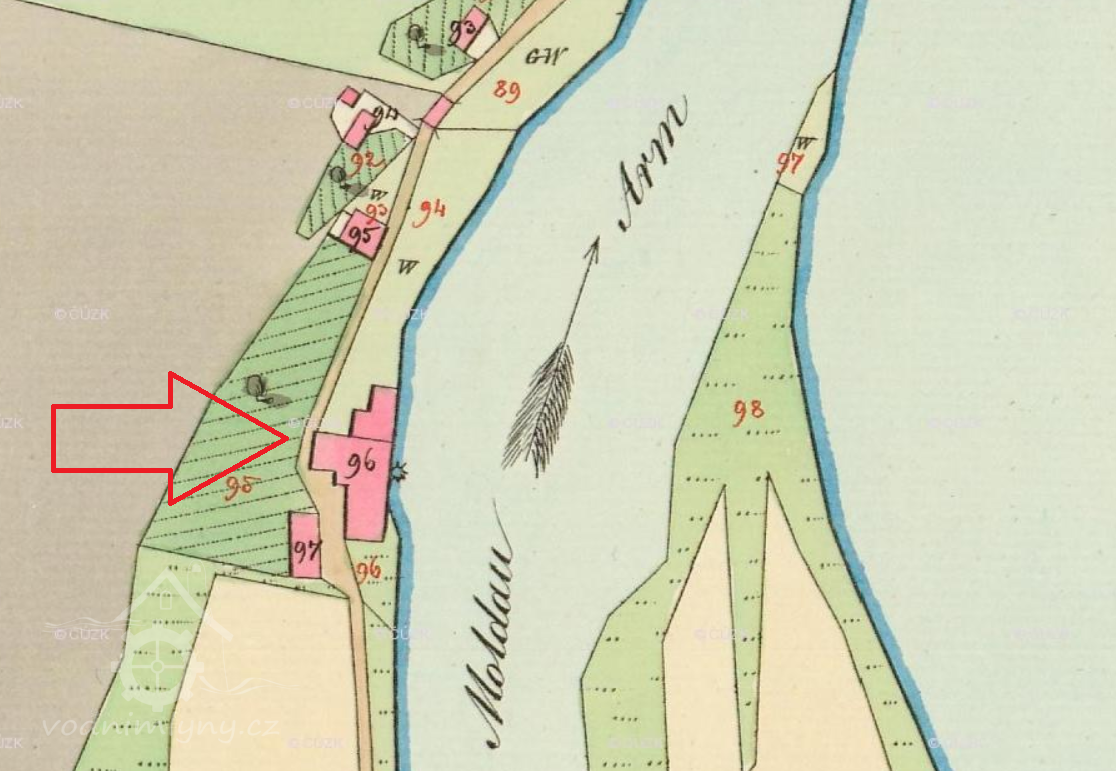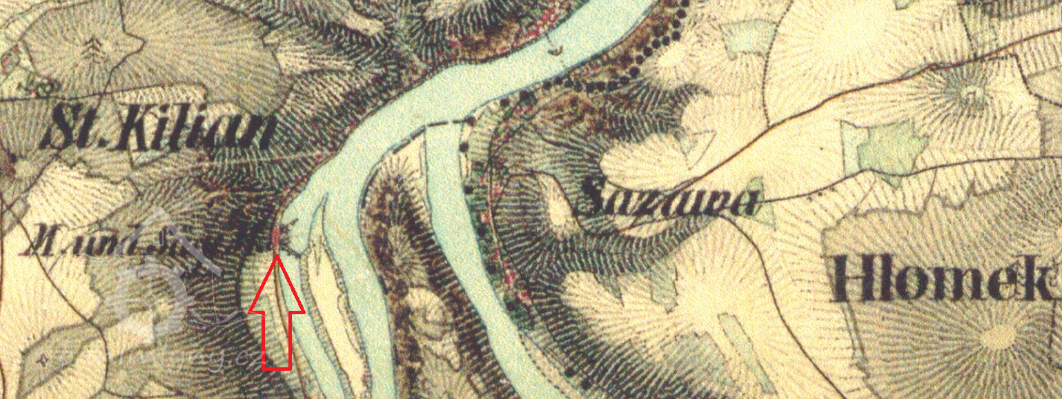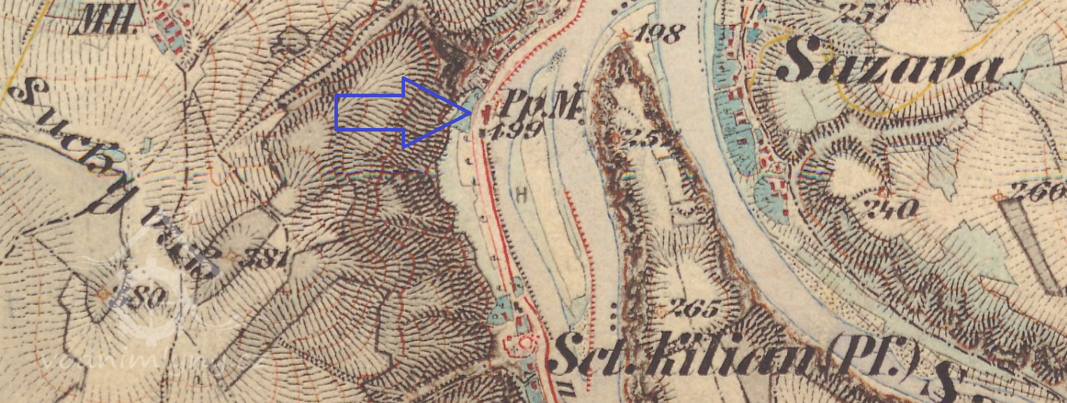 vybudován kol. 1750, přeneseno sem mletí z bývalé fary
