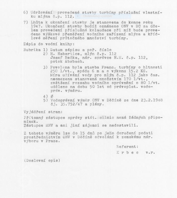V roce 1717 byl mlýn na prodej, odhadní cena byla 120 zlatých, tehdy je zde uváděna také olejna. Z důvodu velké stavební chatrnosti nechtěl žádný mlynář dát víc než 10 zlatých. Nakonec mlýn koupil Michal Giebe za 70 zlatých.