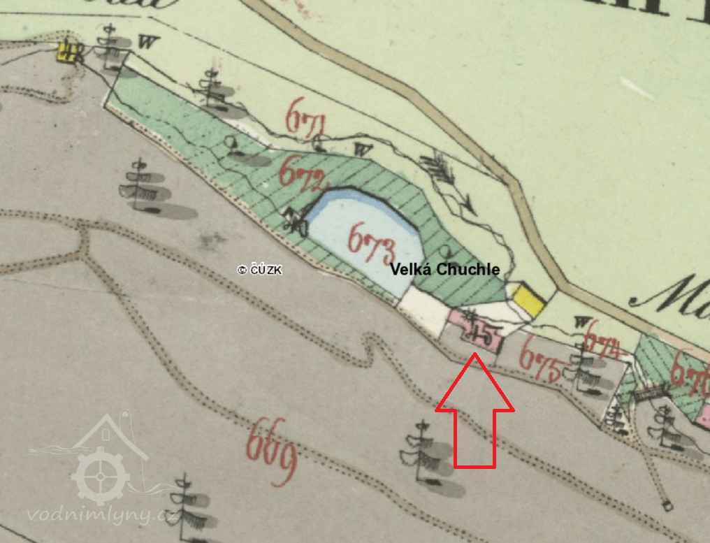 Mlýn pod rybníkem v Čertově strouze, v 19. stol. přestavěn na zpracování cukrové řepy. Původní mlýn byl ale menší a ležel rovnoběžně s potokem, nikoliv jako dnes napříč.
