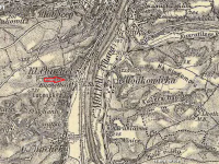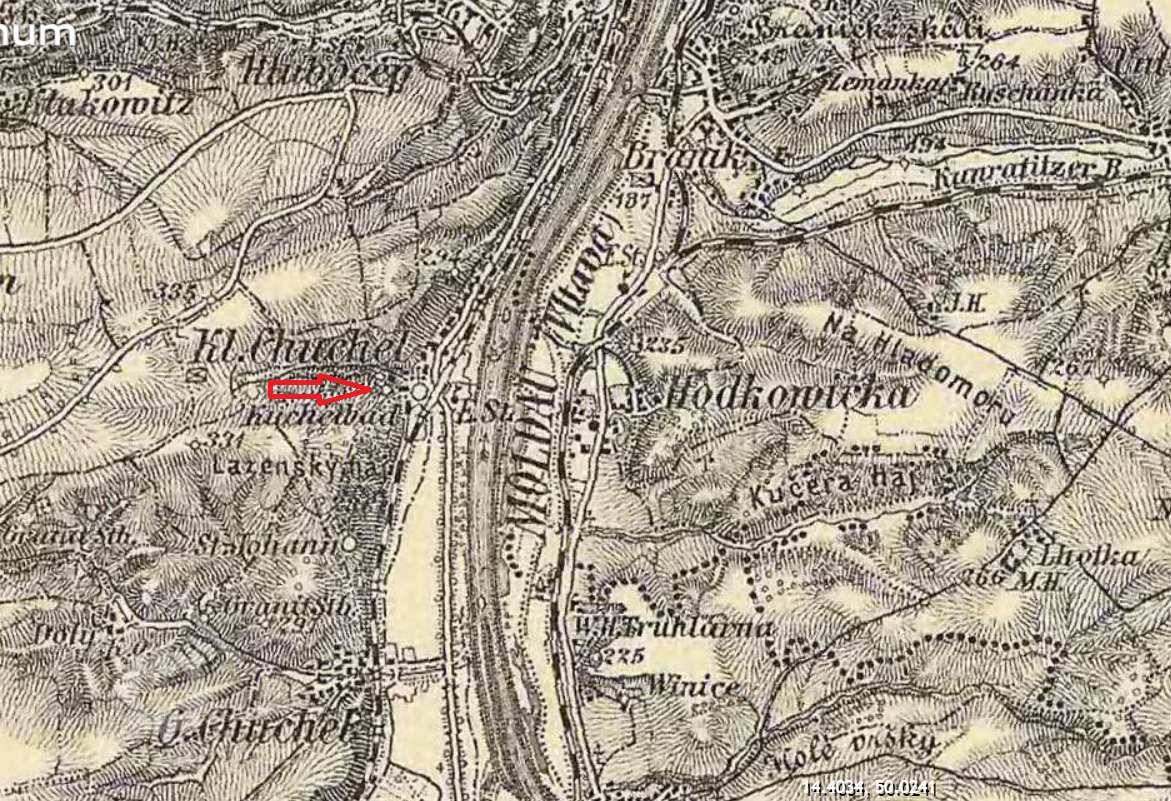 150 m západně od kostela Narození P. Marie v Malé Chuchli