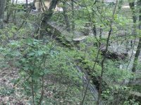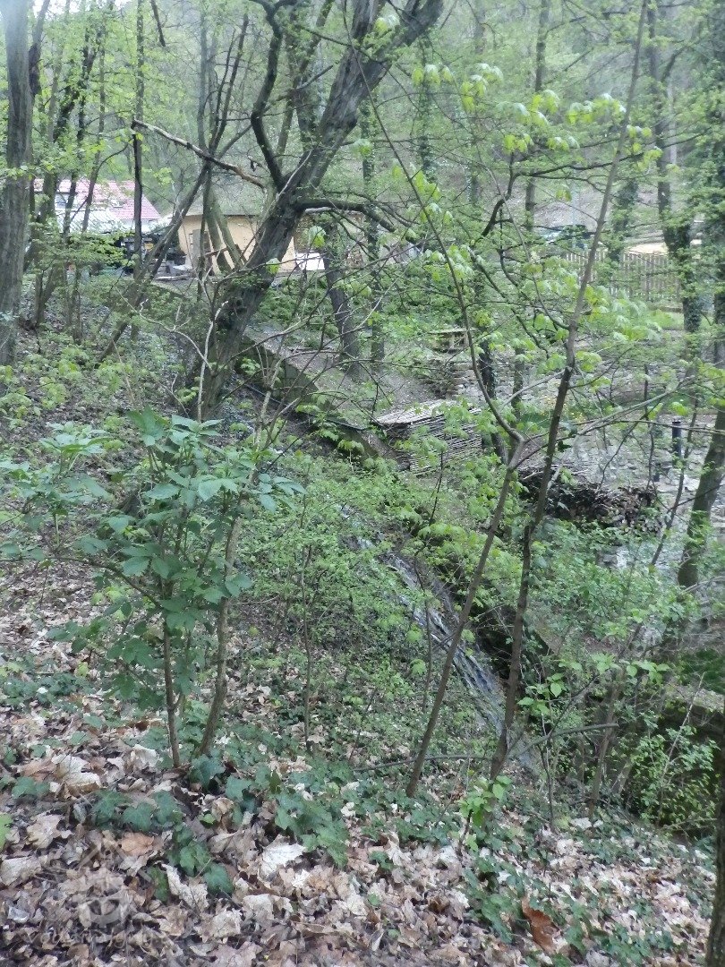Původně potok tekl přirozeně, ale v letech 1952-1954 zde byl vybudován železniční tunel, jeho část prochází i skálou, a těleso toho tunelu tvoří mezi portály vyvýšeninu, která je zasypána zeminou, a potok jej nově překonává uměle vybudovaným vodopádem. Málokdo tuší, že ten tunel v těch místech je, vypadá to jako přirozená stráň.