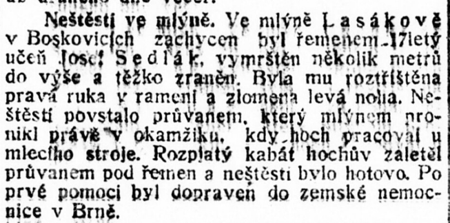 Popis1930: 2 kola na svrchní vodu, hltnost 0,37 m3/s, spád 2,5 m, výkon 8 HP