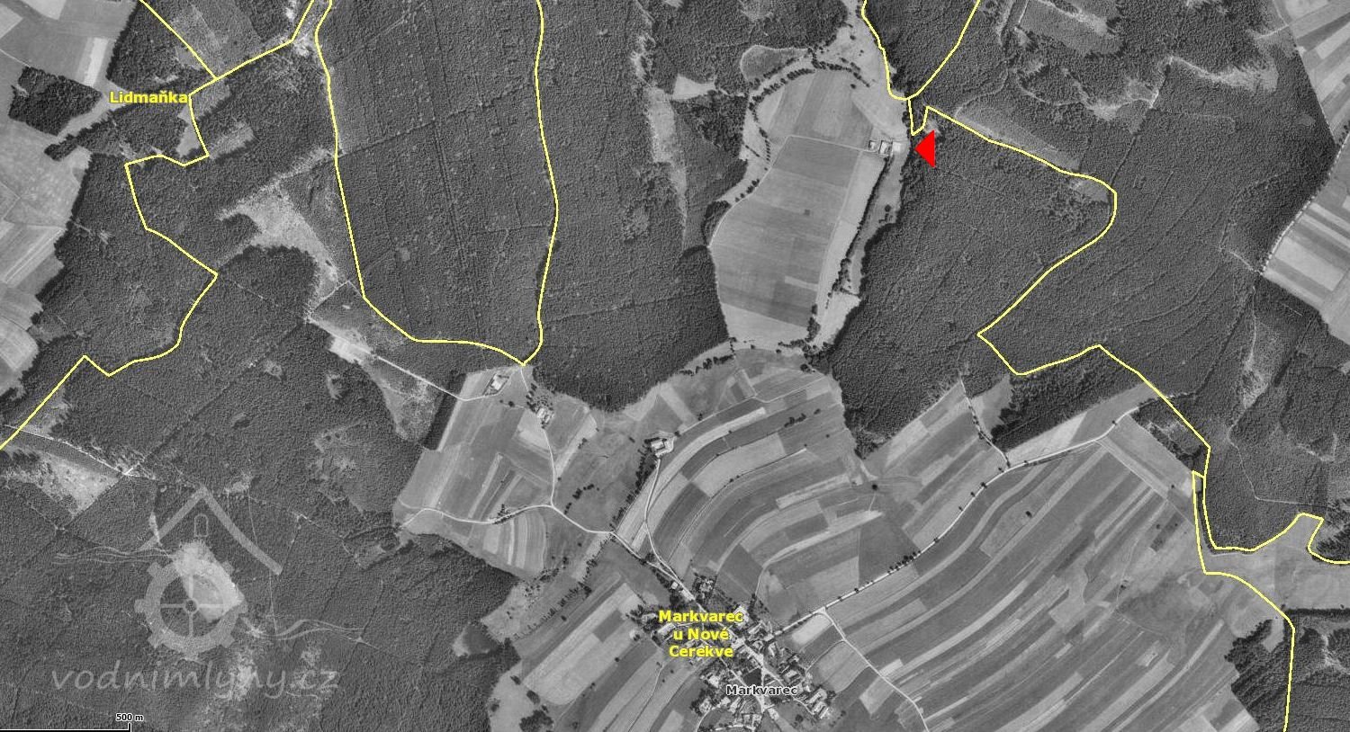 V malebním údolí cca 1,5 km severrně od obce Markvarec stával kdysi mlýn, v matrikách vzpomínaný v polovině 18. století a na mapách popisovaný zkomoleninami příjmení prvního mlynáře. Do současnosti se z něho dochovala betonová kašna a pár zdí.