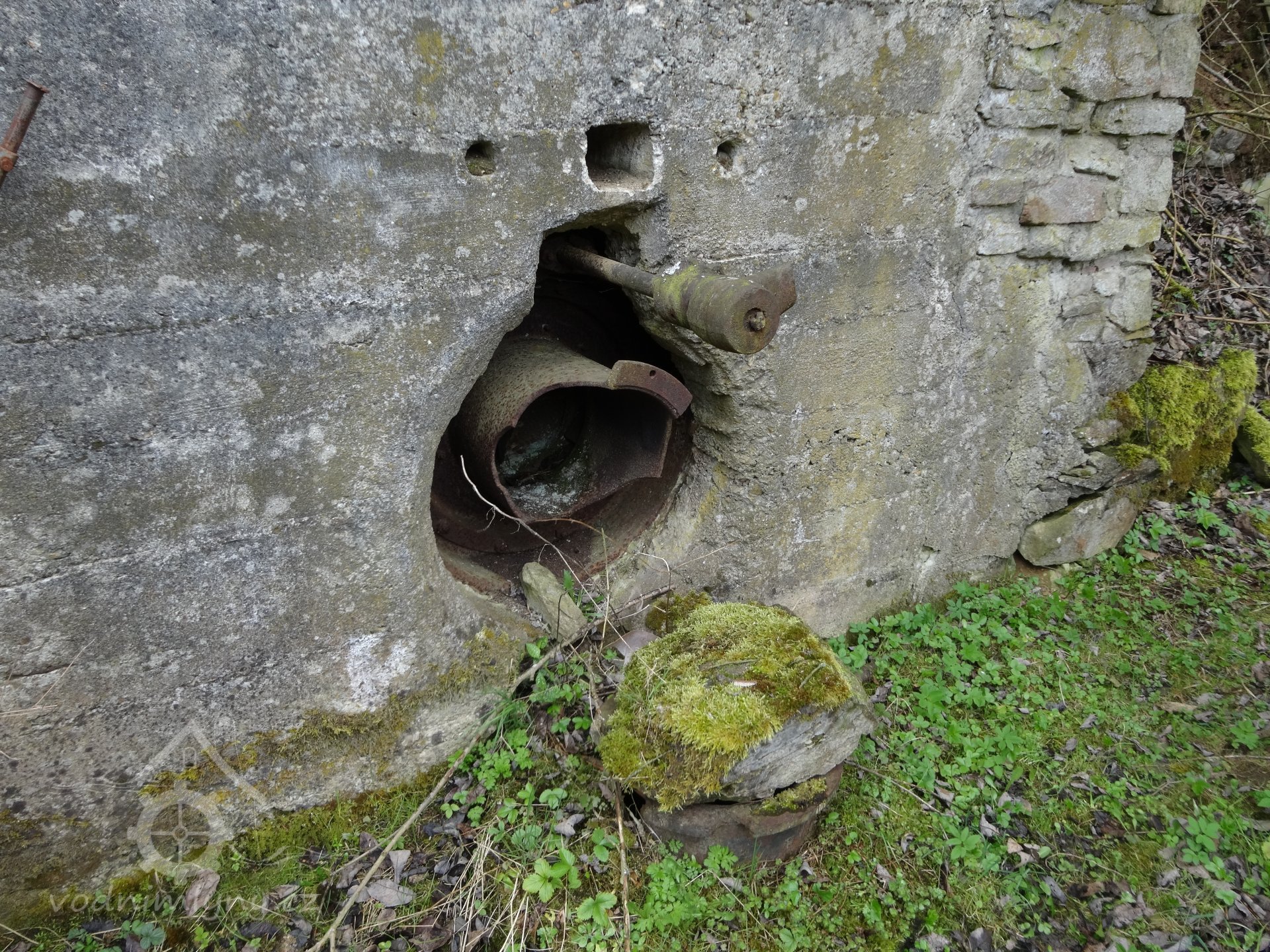 Nejvýraznější stopou je kašna před turbínou se zbytkem uzavíracího mechanismu vody na turbínu a litinové roury. Turbína byla instalována před rokem 1930.