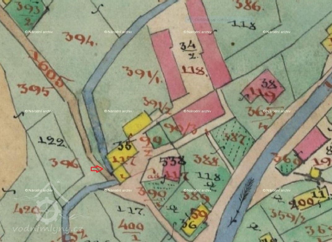 PopisV roce 1930 měl mlýn 1 kolo na vrchní vodá, hltnost 0,115 m3/s, spád 3,45 m, výkon 3,5 HP.