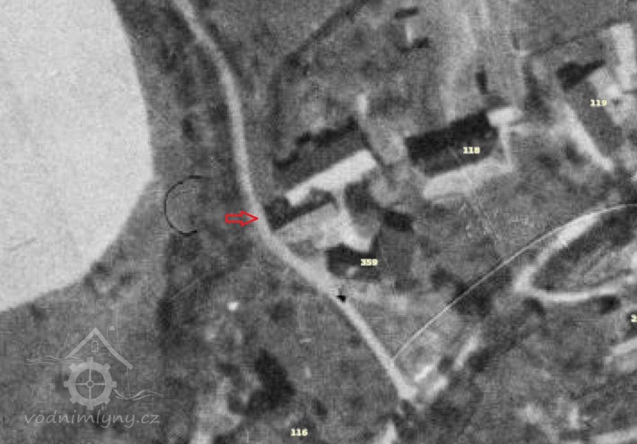 Na leteckém mapování z roku 1954 budova mlýna ještě stojí.